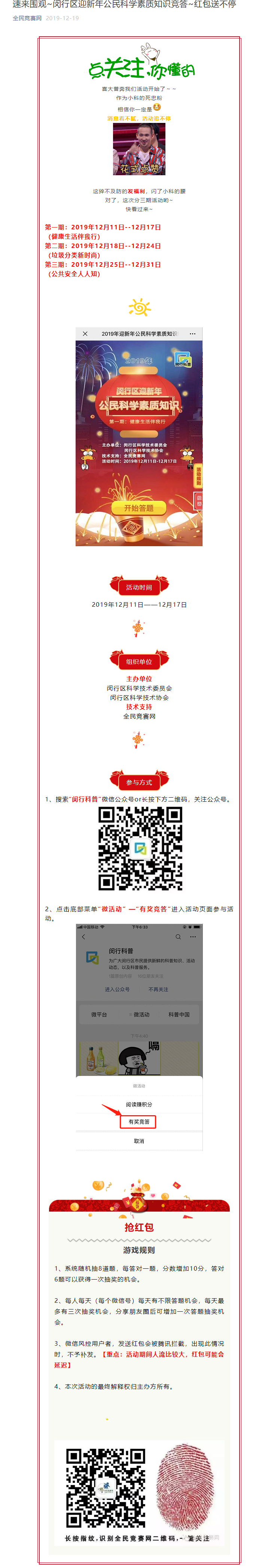 速来围观~闵行区迎新年公民科学素质知识竞答~红包送不停