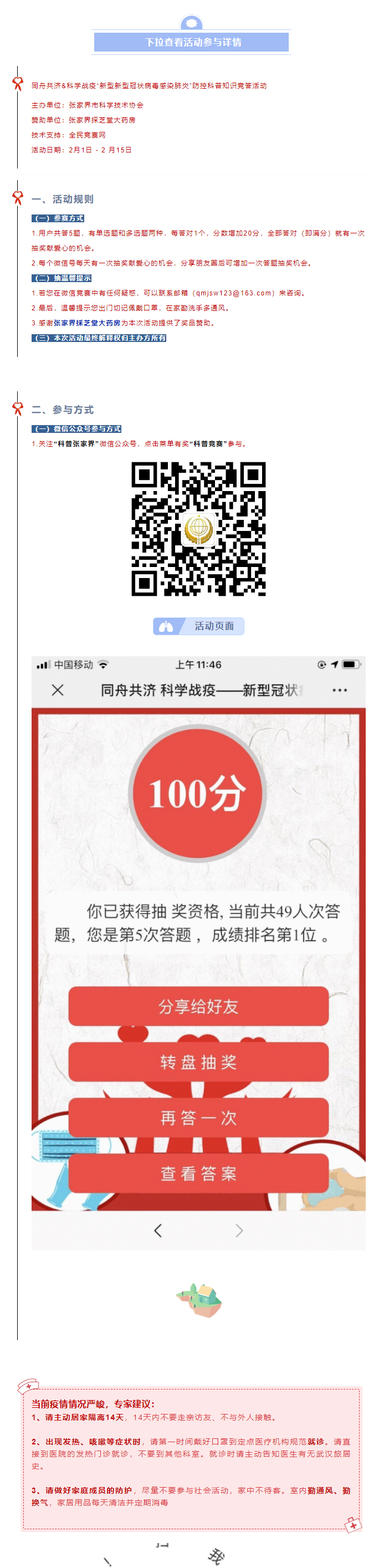 同舟共济&科学战疫“新型冠状病毒感染肺炎”防控科普知识竞答活动火热进行中~