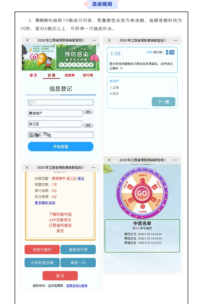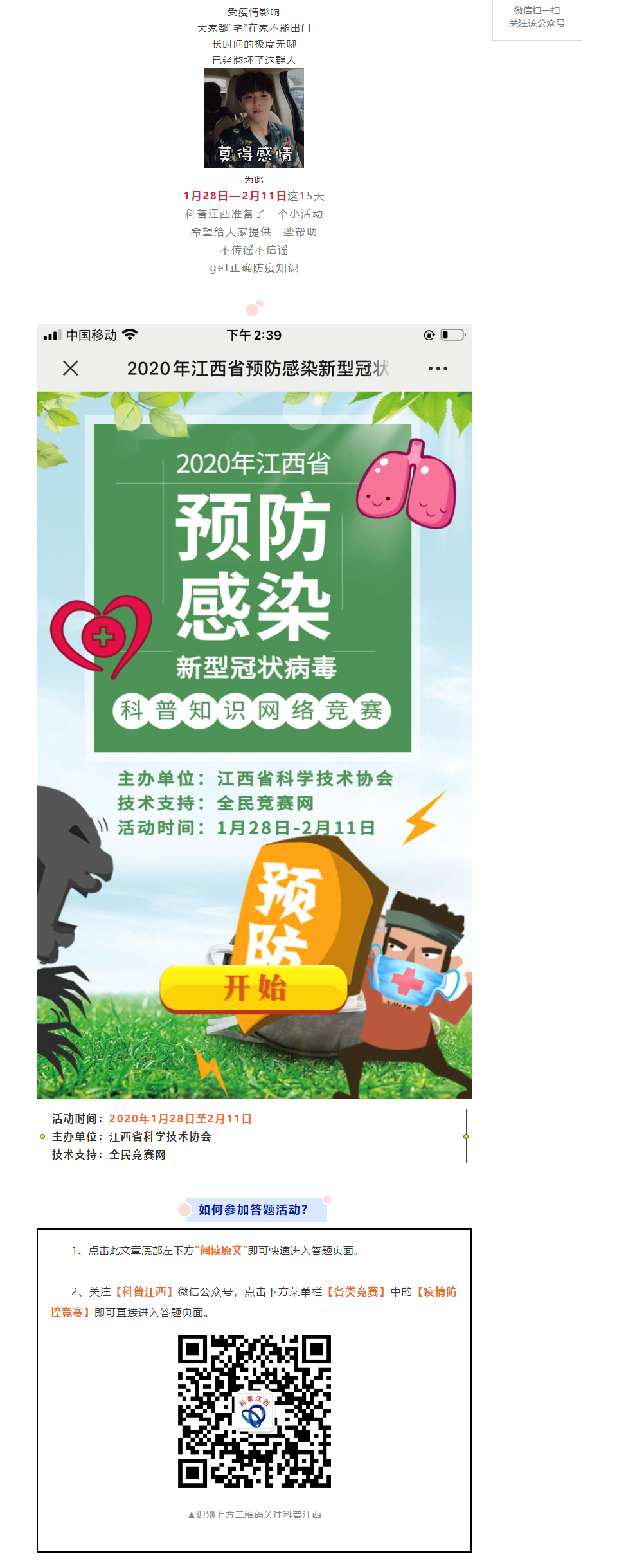 众志成城~用知识抗击新型冠状病毒 打赢防疫攻坚战!科普有奖竞答开始了!